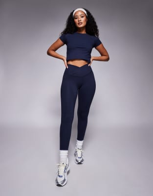 Tall Soft Touch Yoga Gym Leggings With Wrap Waist In Navy