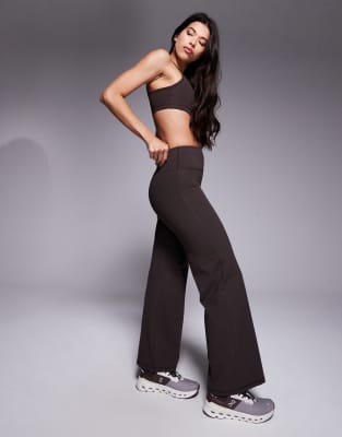 Icon Soft Touch High Waist Wide Leg Dance Pants In Brown