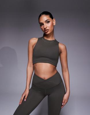 Halter Neck Performance Tank Top With Inner Bra In Brown