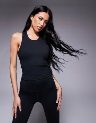 Scoop Neck Slightly Cropped Training Tank Top In Black
