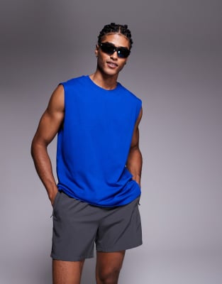 Icon Cotton Oversized Pump Training Tank With Quick Dry Finish In Blue