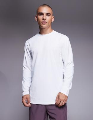 Icon Active Quick Dry Muscle Fit Base Layer Training Long Sleeve Top In White