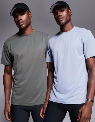 Icon Active Quick Dry Muscle Fit Base Layer Training T-shirt 2 Pack In Multi