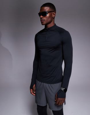 Slim Fit 1/4 Zip Base Layer Long Sleeve Running Top In Black