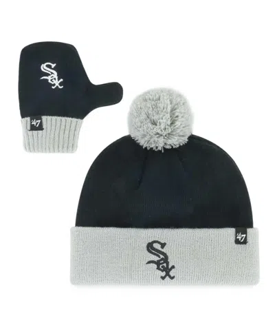 Babies' Toddler Black Chicago White Sox Bam Bam Cuffed Knit Pom With Hat And Mittens Set In Multi