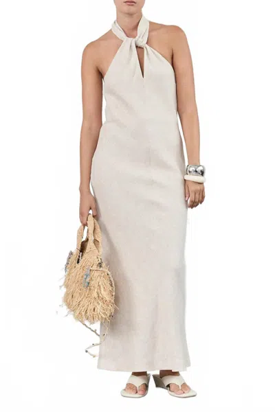 Contrasting Cross Over Maxi Linen Dress In Natural In White