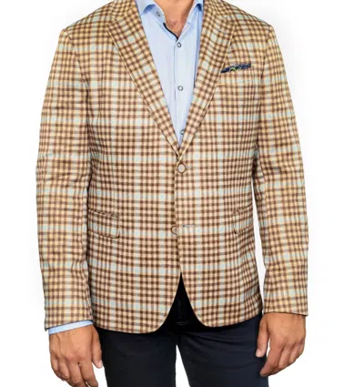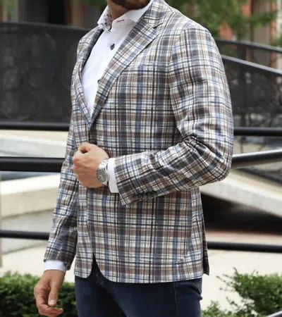 Colton Plaid Stretch Blazer In Tan With Blue In Multi