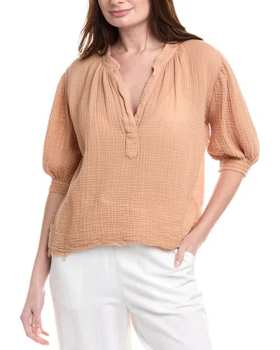 Lightweight Gauze Dashiki Puff Sleeve Top In Brown