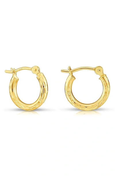 14k Gold Satin Cut Hoop Earrings In Yellow