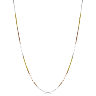 925 Sterling Silver Tri Color Box Chain 16"-24" In Gold