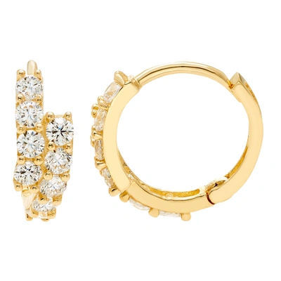 14k Yellow Gold Asymmetrical Cz Huggie Earrings, 5x15mm, With Endless Back, Women's In Silver