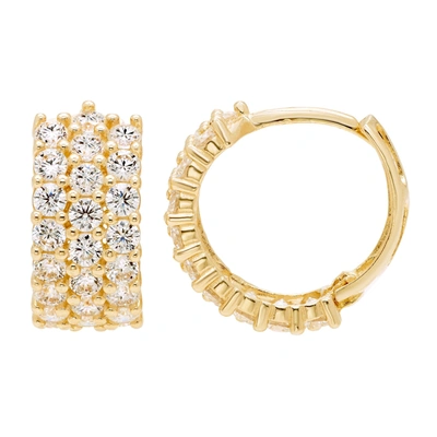 14k Yellow Gold Dainty Cz Huggie Earrings, 3x15mm, With Endless Back, Women's, Unisex In Silver