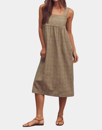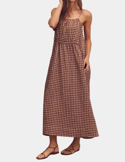 Front Shirring Gingham Cami Midi Dress In Brick In Red