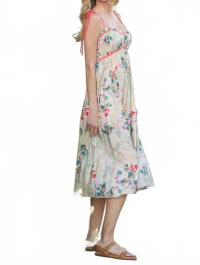 Tie Shoulder Floral Midi Dress In Nude Beige In Multi