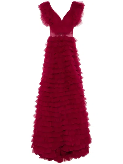 Layered Ruffled Gown In Red