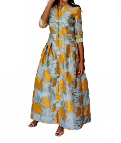 Cecilia Gown In Orange Pansy Vine Organza In Blue