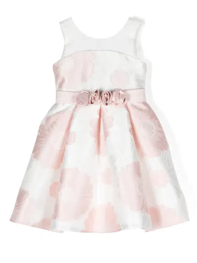 Kids' Floral-jacquard Pleated Dress In White