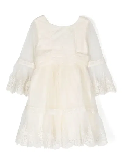 Kids' Floral-lace Tulle Dress In White