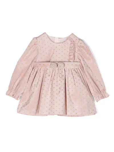 Babies' Polka-dot Ruffle-trim Velvet Dress In Pink