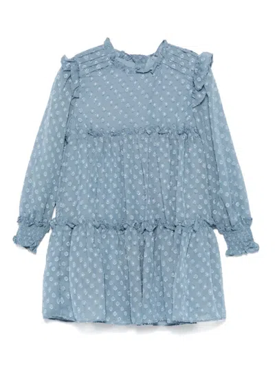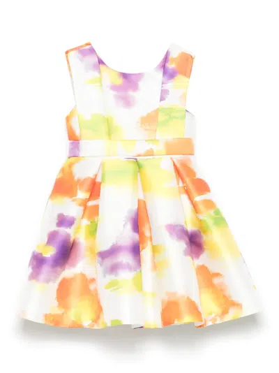 Kids' Floral-appliqué Pleated Dress In Yellow
