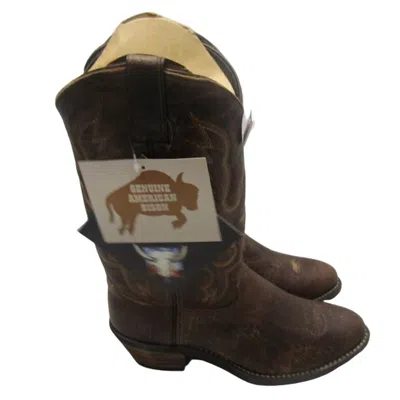 Men's Bison Leather Western Boots In Brown