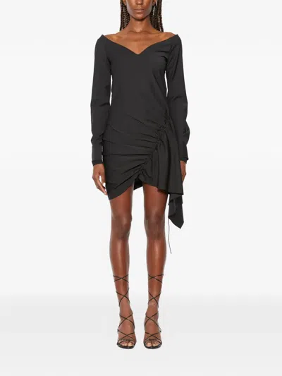 Long-sleeves Asymmetric Dress In Black
