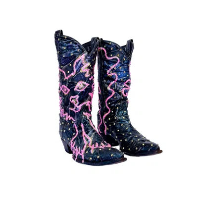 Women's Black / Blue / Gold Doodle Blue Vintage Cowboy Boot In Multi