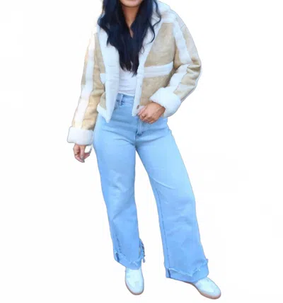 Washed Polyurethane Short Shearling Coat In Beige In Blue