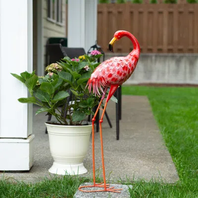 Bright Flamingo Yard Art Looking Back - Medium Pink In Red