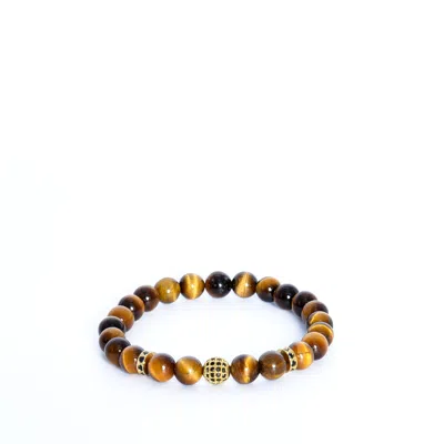 Men's Brown / Gold / Yellow Courage Handmade Bracelet In Sterling Silver With Tiger's Eye & Zircons