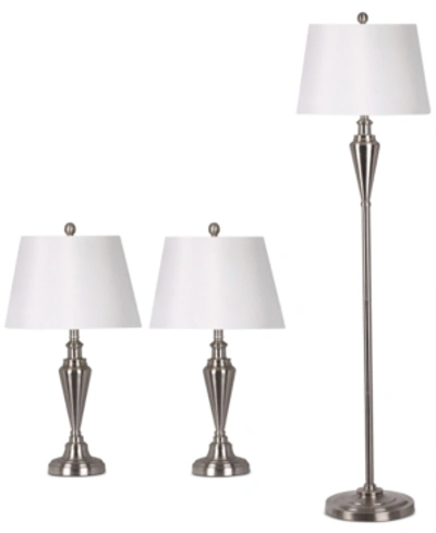 Satin Steel Set Of Two Table Lamps And 1 Floor Lamp