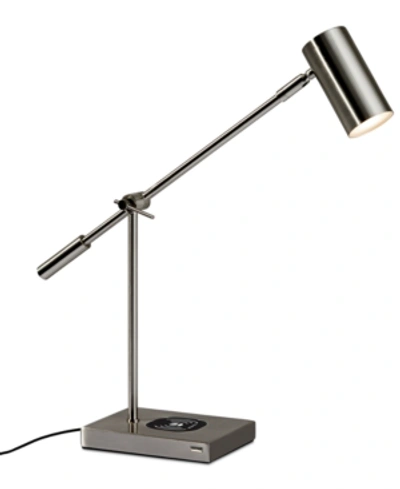 Collette Led Desk Lamp With Wireless Air Charger & Usb Port In Brushed Steel
