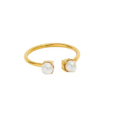 Women's Gold / White Double Pearl Gold Plated Stainless Steel Ring In Multi