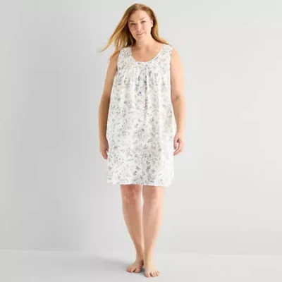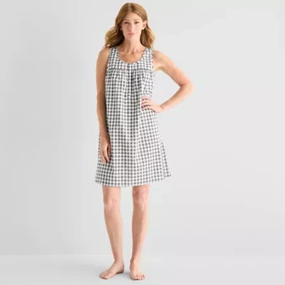 Womens Plus Poplin Sleeveless Crew Neck Nightgown In Multi