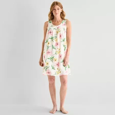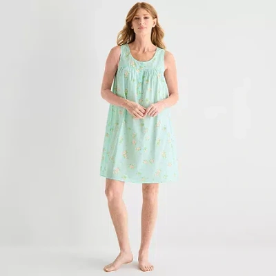 Womens Poplin Sleeveless Crew Neck Nightgown In Multi