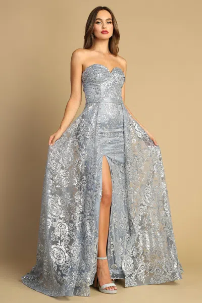 3107g Prom Long Glitter Print Overskirt Formal Dress In Gray