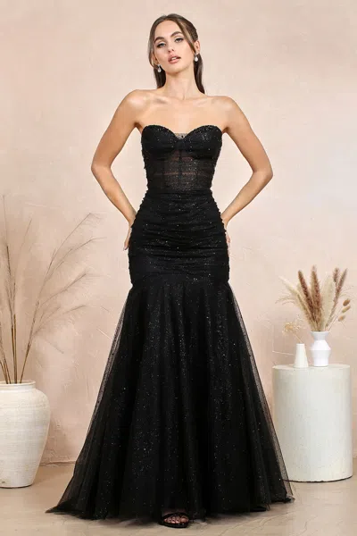 Adora 3164 Long Glitter Formal Mermaid Prom Dress In Black