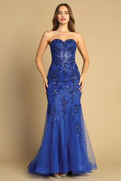 Adora 3080 Long Prom Beaded Lace Mermaid Formal Dress In Blue