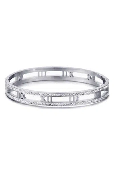 Silver Plated Stainless Steel Cz Tarnish-resistant Roman Numerals Bangle Bracelet