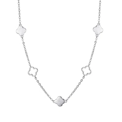 Silver Plated Stainless Steel Tarnish-resistant 5-leaf Clover Station Necklace In Brown
