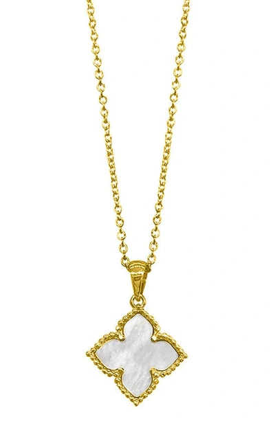 Mother-of-pearl Clover Initial Pendant Necklace In Gold
