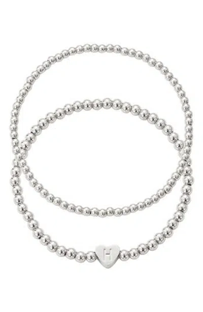 Silver Ball Bead Initial Bracelet Set In Metallic