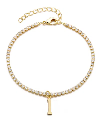 14k Gold Plated Cubic Zirconia Initial Disc Pendant Necklace In Gold - B
