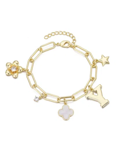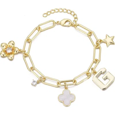 Gold Adjustable Layered Color Faux Stone And Paperclip Chain Initial Bracelet In Multi-k