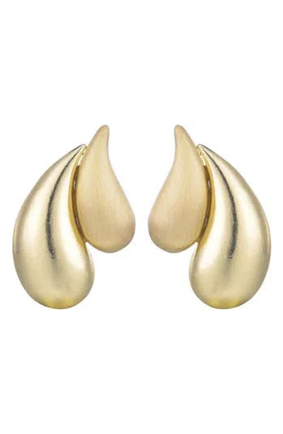 14k Plated Matte Finish Double Ball Earrings In Gold