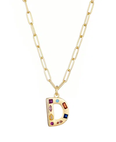 Gold Crystal Funky Initial Paperclip Chain Necklace