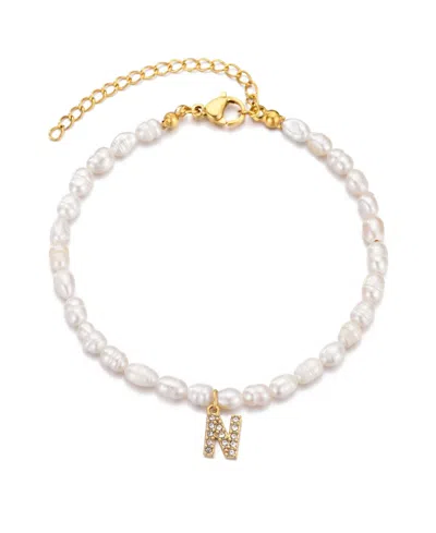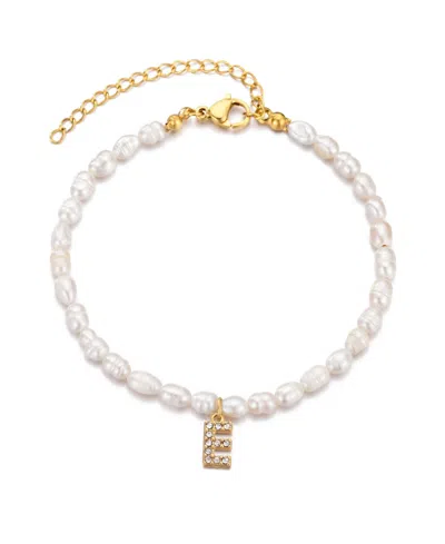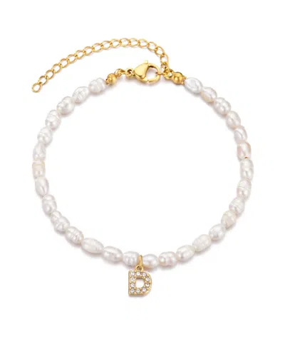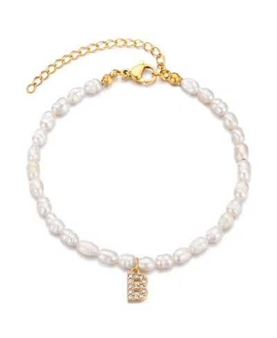 Gold Freshwater Cultivated Pearl Cubic Zirconia Letter Bracelet In White