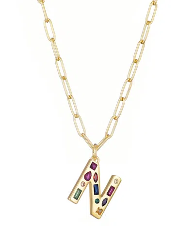 Floating Letter Initial Cubic Zirconia Pendant Necklace In Gold