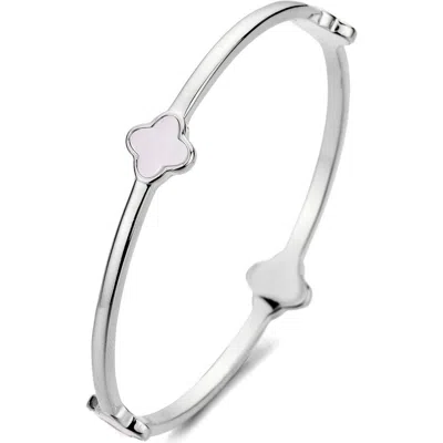 Silver Plated Mother Of Pearl Clover Bangle