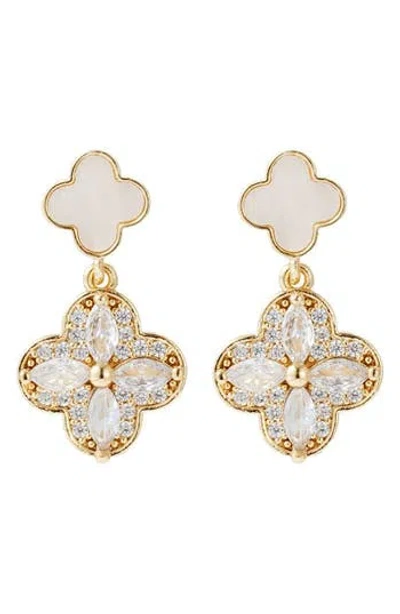 14k Gold Plated Mother Of Pearl And Cz Clover Drop Earrings